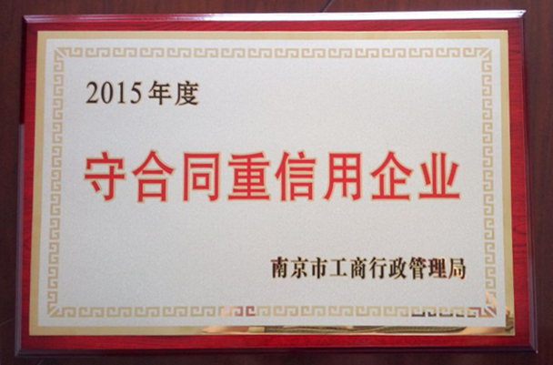 近日,接到南京市企業(yè)信用管理協(xié)會通知,我公司正式通過2015年度市級“守合同重信用”企業(yè)的認(rèn)定,并予授牌和頒發(fā)證書。